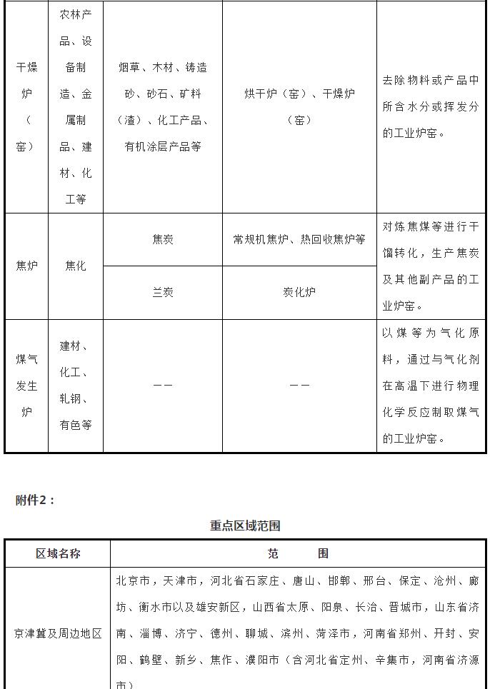 (一)主要目標(biāo)。到2020年,完善工業(yè)爐窯大氣污染綜合治理管理體系,推進(jìn)工業(yè)爐窯全面達(dá)標(biāo)排放,京津冀及周邊地區(qū)、長三角地區(qū)、汾渭平原等大氣污染防治重點區(qū)域(以下簡稱重點區(qū)域,范圍見附件2)工業(yè)爐窯裝備和污染治理水平明顯提高,實現(xiàn)工業(yè)行業(yè)二氧化硫、氮氧化物、顆粒物等污染物排放進(jìn)一步下降,促進(jìn)鋼鐵、建材等重點行業(yè)二氧化碳排放總量得到有效控制,推動環(huán)境空氣質(zhì)量持續(xù)改善和產(chǎn)業(yè)高質(zhì)量發(fā)展。