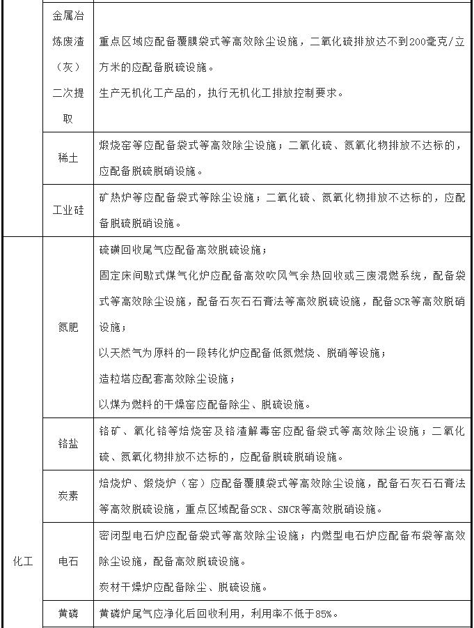 暫未制訂行業(yè)排放標(biāo)準(zhǔn)的工業(yè)爐窯,包括鑄造,日用玻璃,玻璃纖維、耐火材料、石灰、礦物棉等建材行業(yè),鎢、工業(yè)硅、金屬冶煉廢渣(灰)二次提取等有色金屬行業(yè),氮肥、電石、無機磷、活性炭等化工行業(yè),應(yīng)參照相關(guān)行業(yè)已出臺的標(biāo)準(zhǔn),全面加大污染治理力度(見附件4),鑄造行業(yè)燒結(jié)、高爐工序污染排放控制按照鋼鐵行業(yè)相關(guān)標(biāo)準(zhǔn)要求執(zhí)行;重點區(qū)域原則上按照顆粒物、二氧化硫、氮氧化物排放限值分別不高于30、200、300毫克/立方米實施改造,其中,日用玻璃、玻璃棉氮氧化物排放限值不高于400毫克/立方米;已制定更嚴(yán)格地方排放標(biāo)準(zhǔn)的地區(qū),執(zhí)行地方排放標(biāo)準(zhǔn)。